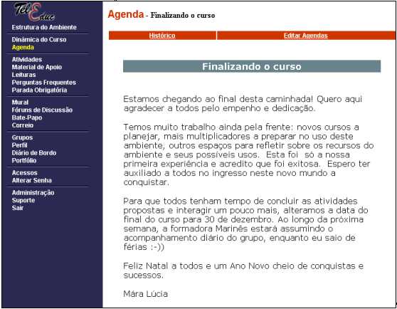 Para sair do ambiente, você deve clicar em Sair no menu do curso, à esquerda na janela principal do ambiente (fig. 19).